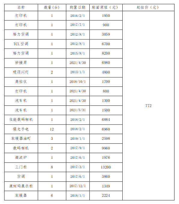 鄱阳县国控保安服务有限公司48件设备资产转让,竞买保证金700元,设备资产信息、起拍价详见下表: