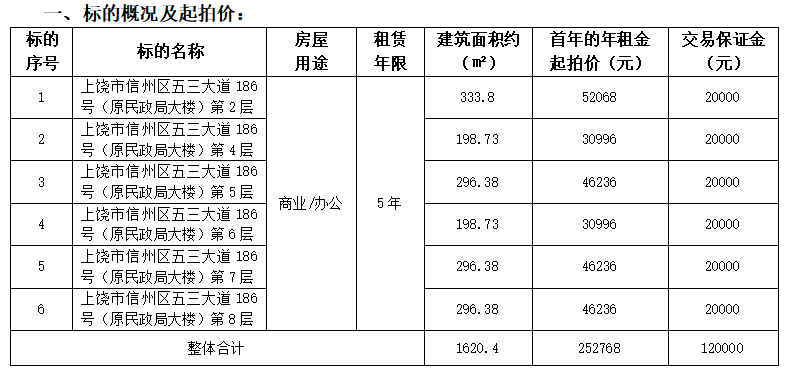 上饶市信州区五三大道186号(原民政局大楼)房产招租(5年)公告